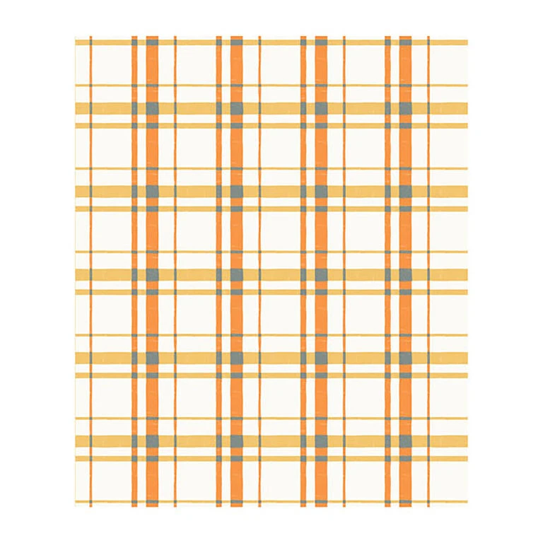 - Plush throw blanket features a dark yellow, sage green and coral plaid pattern.