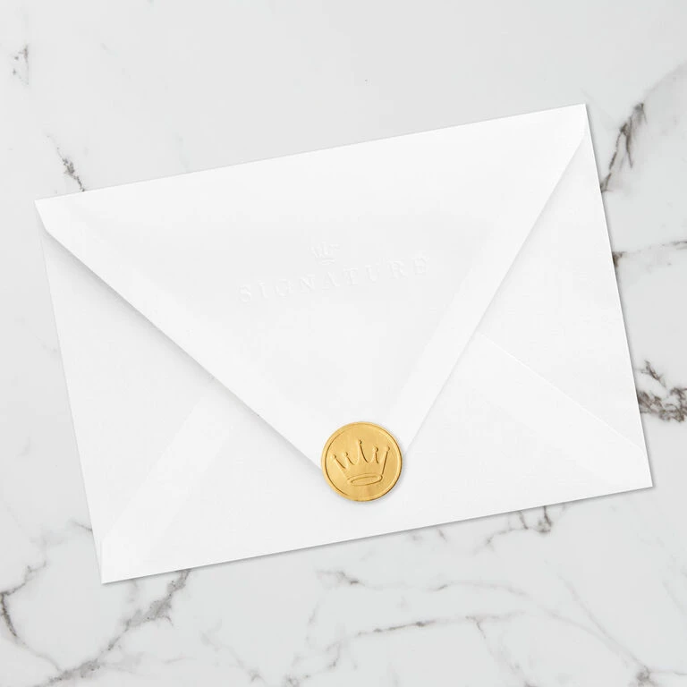 - Includes one card and one envelope with a Gold Crown seal. Envelope color may vary.